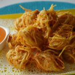 Sprinkle chaat masala & serve with dip.