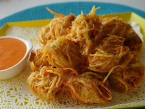 In a wok,heat cooking oil and fry on medium flame until golden brown.