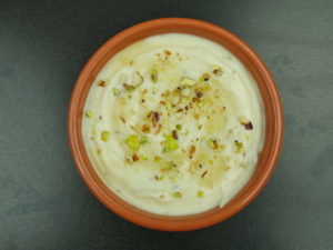 In bowl,add Olper’s cream,honey,salt and nuts,mix well.