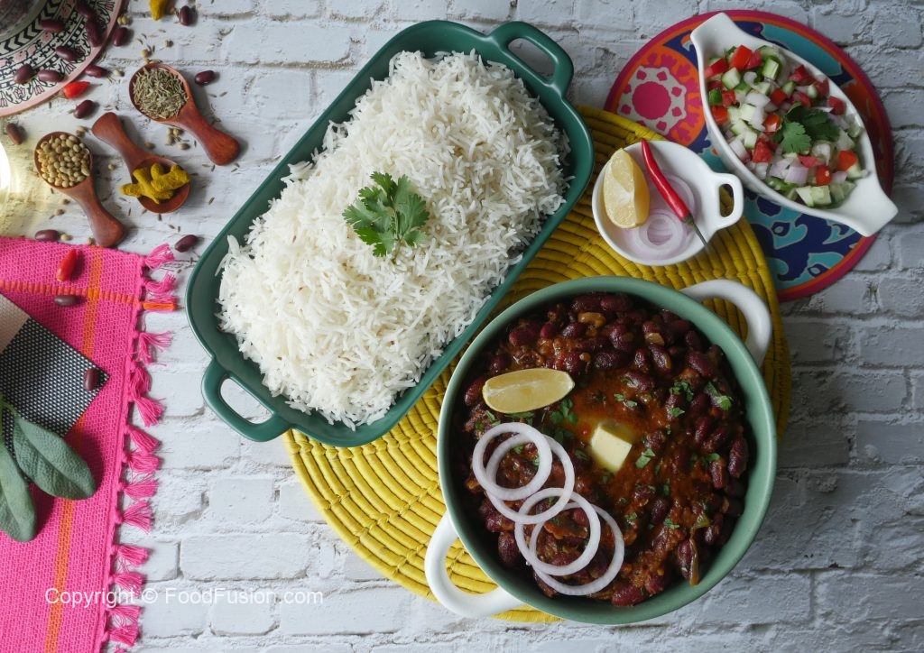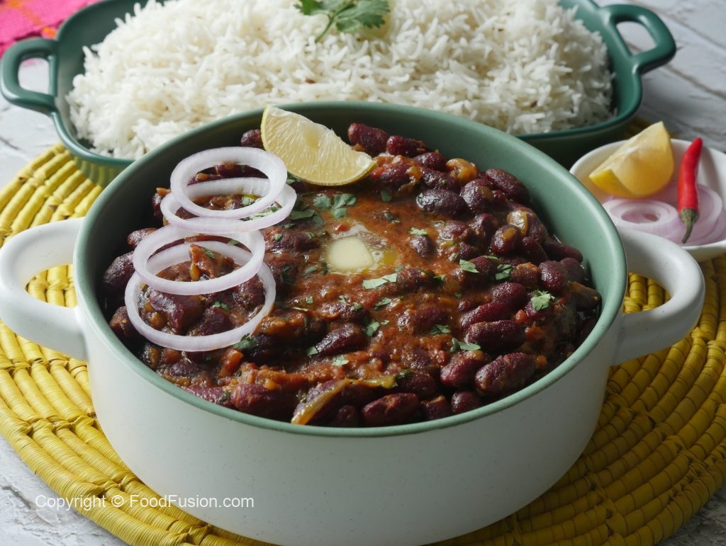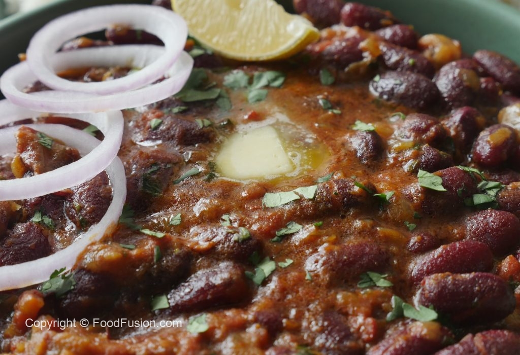 In a pot,add red kidney beans,water,salt & mix well & bring it to boil and remove scum,cover & cook on medium flame until tender (approx. 45-50 minutes) then cook on high flame approx. ½ cup water is left & set aside.