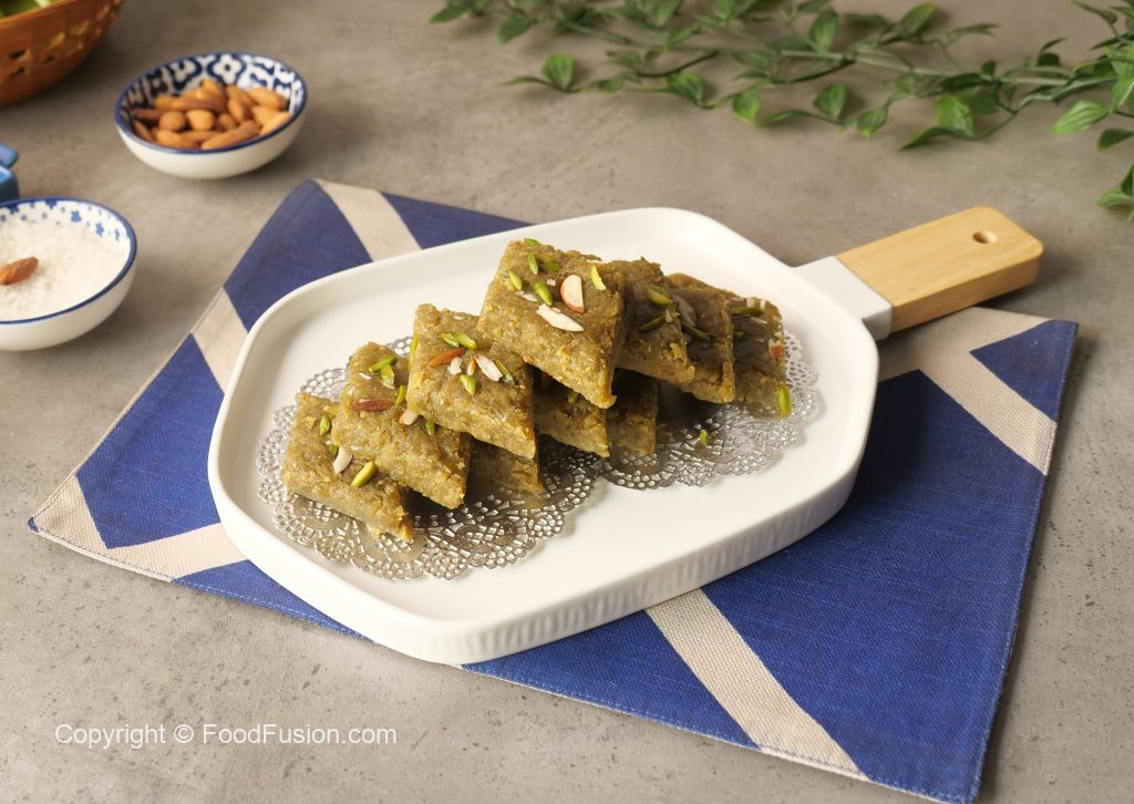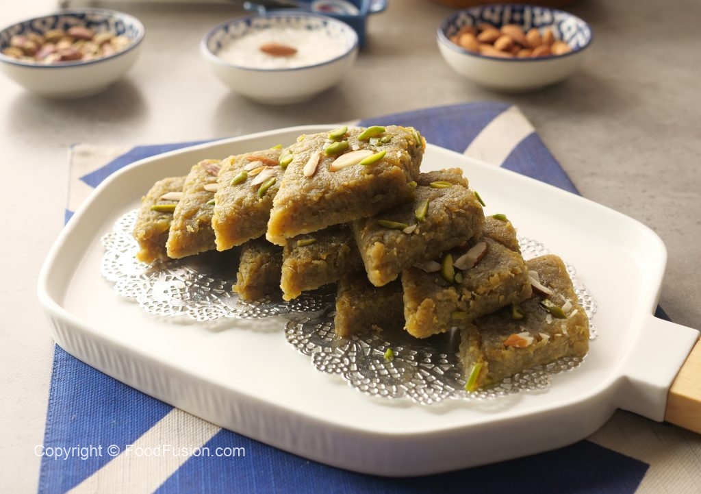 Mithai ki consistency check karne k liye aik chota si quantity len or ball banayen. Agar ball smooth banay to mithai ready hai.