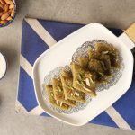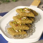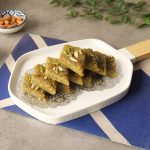 Cut in pieces, garnish with pistachios & almonds.