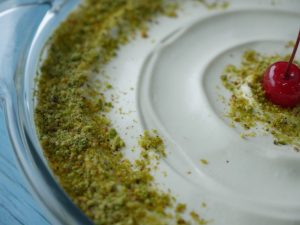 Bowl mein cream,powdered cheeni aur vanill essence dal dein aur fluffy hunay tak beat ker lein.