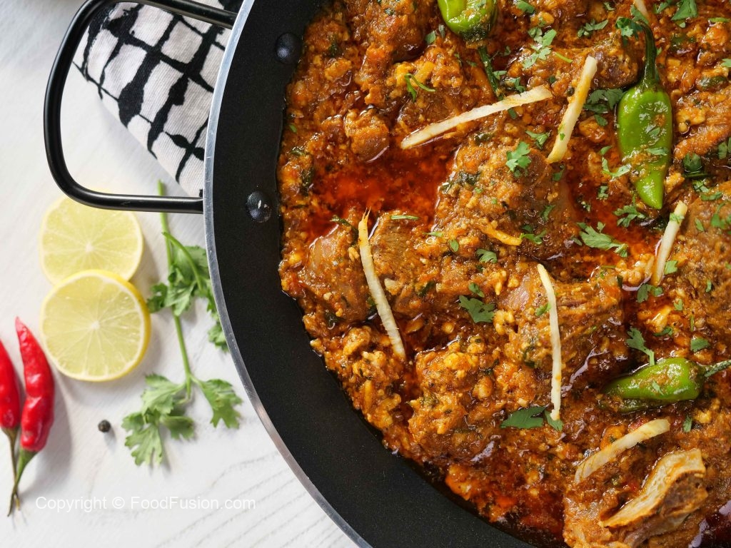 -Karahi mein cooking oil,mutton,pink salt aur makhan daal kar dhak dein,chulha on karein aur darmiyani ancch per makhan melt hone dein phir achi tarah mix kar ke high flame par 4-5 minutes tak paka lein.
