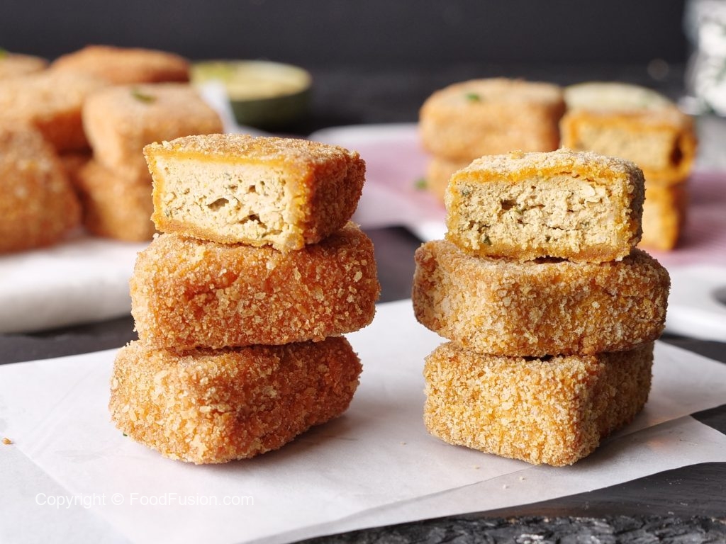 -Now dip nuggets into prepared flour batter & coat with breadcrumbs (makes 40).