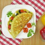 Sprinkle dried oregano and fill stir fried vegetable over half of each omelette.