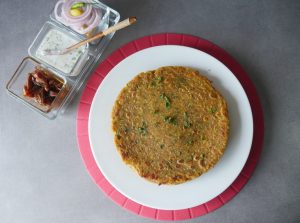 Knead dough again,take a small dough,grease hands with oil and make a ball,sprinkle dry flour,add & spread cooking oil and roll out with the help of rolling pin.