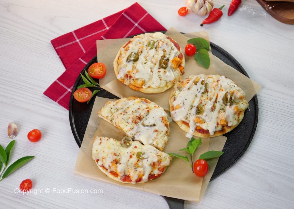 -Chulha bund ker dein,cooked naan per pizza sauce dal ker pheela lein,cooked chicken,tayyar alfredo sauce,cheddar cheese,mozzarella cheese,pickled jalapenos,lal mirch crushed & dried oregano dal ker dhak dein,chulha on karein aur halki ancch per cheese melt ho janay tak paka lein (3-4 minutes).