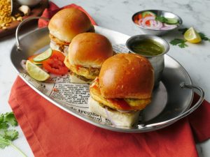 Mini bun kababs ko chutney & pyaz rings ka saath serve karein.