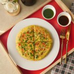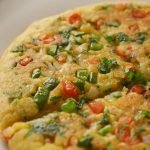 Shimla mirch,tamatar,pyaz aur hara dhania dal ker gently press karein aur flip ker lein.