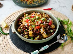 Sprinkle fresh coriander & serve with tamarind sauce & green sauce!