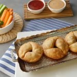 Take three small dough,add prepared chicken filling,prepared potato filling,prepared mozzarella cheese,apply water,fold & seal properly.