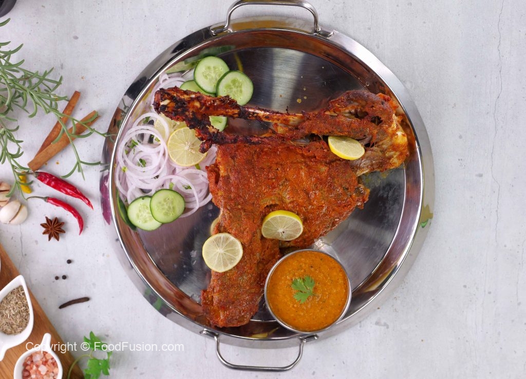 -Baking ka bad mutton leg ko nikal lein,darchini aur hari elaichi ko remove ker lein.