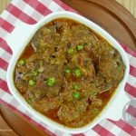 Add 2 cups of water and mix. Cover and cook until meat is tender on low flame. (You can additional water to tenderize meat)