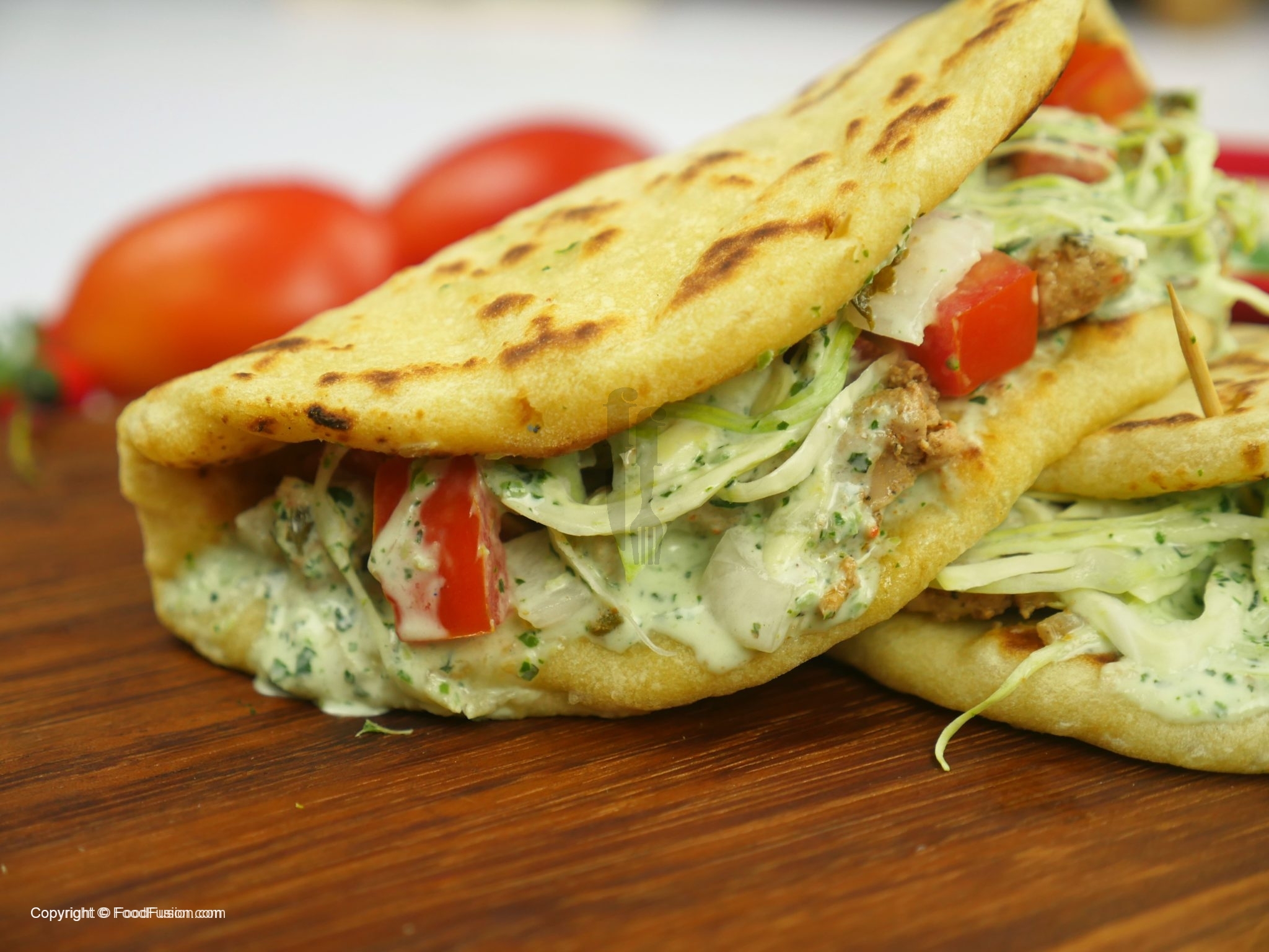 Naan per chicken,pyaz,tamatar,band gobhi aur chutney dal dein.