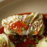 -Sprinkle sesame seeds,green onion leaves & serve with prepared sauce!