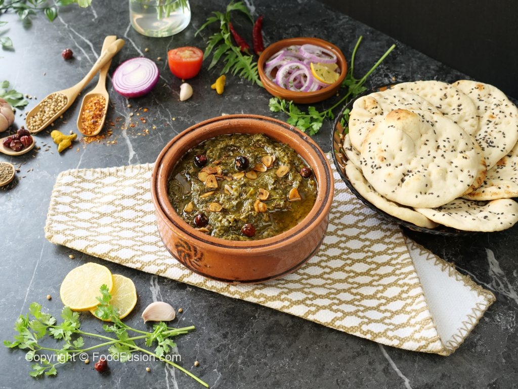Serve mini naan with palak handi.
