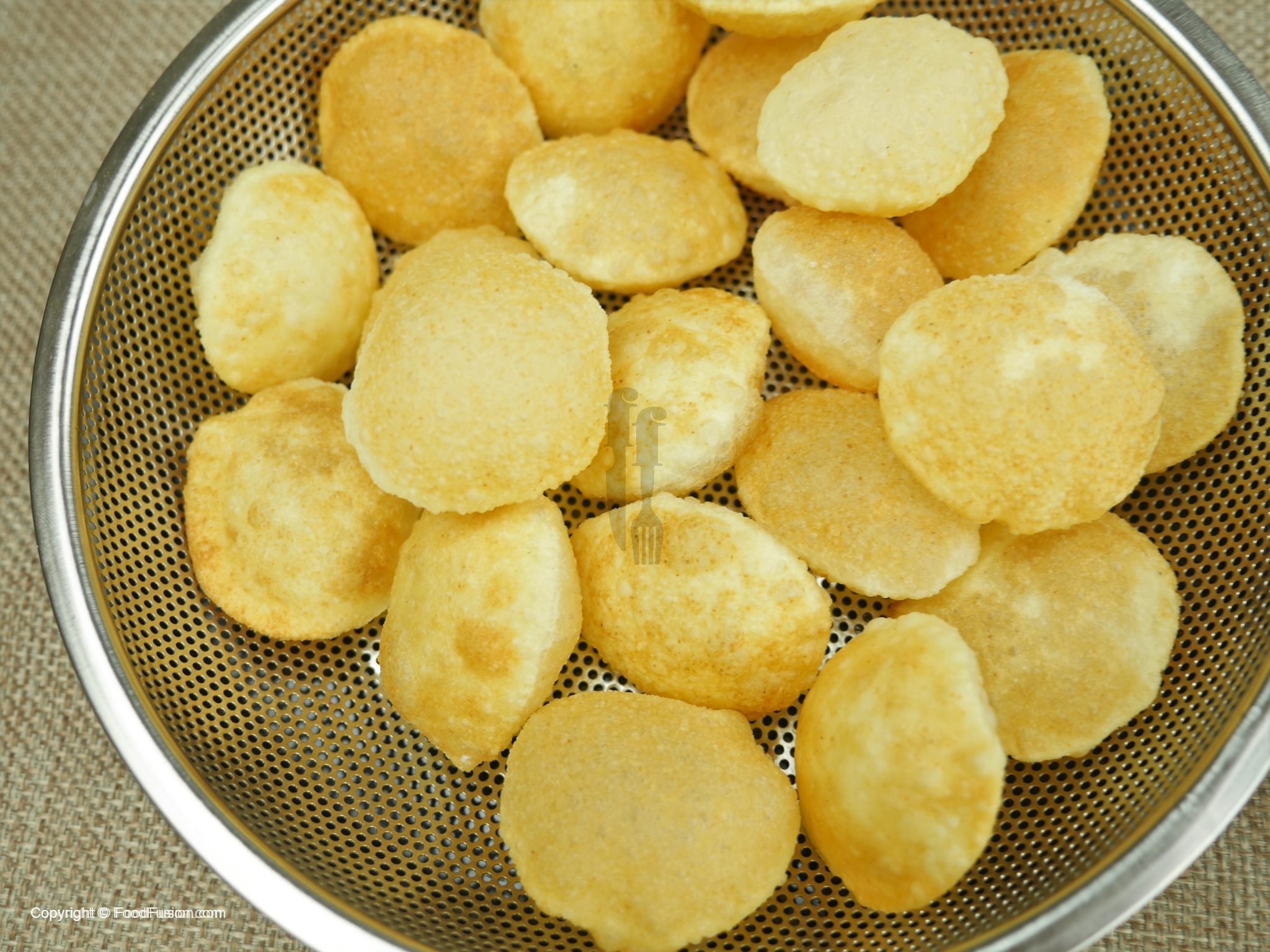 • Poke a small hole in the center of the Gol Gappa (or Poori).