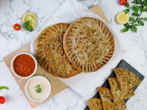 • Knead again until smooth (5-6 mins) and divide the dough into two balls.