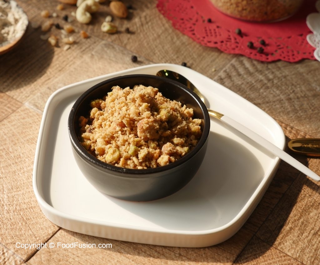 Sindhi Style Panjiri (Bhogaro) a recipe passed on to Food Fusion by Saima late grand mother. There are may recipes for it, this one is Sindhi style Panjiri called Bhogaro. #HappyCookingToYou #FoodFusion Panjiri is a nutritional supplement to nurish and stregnthen the body. Specially recommended for new mothers/nursing mothers and growing children. Consume 2-3 TBS at a time, overeating may lead to indigestion.