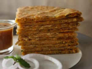 Heat griddle and fry stuffed paratha from both sides with oil.