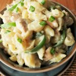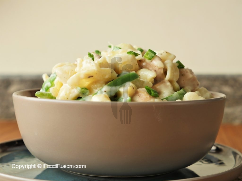 In white sauce,add stir-fried vegetables,cooked chicken,boiled shell pasta and give it a good mix.