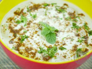 Take soaked bhalay in hand and press to remove excess water and add them in yogurt.