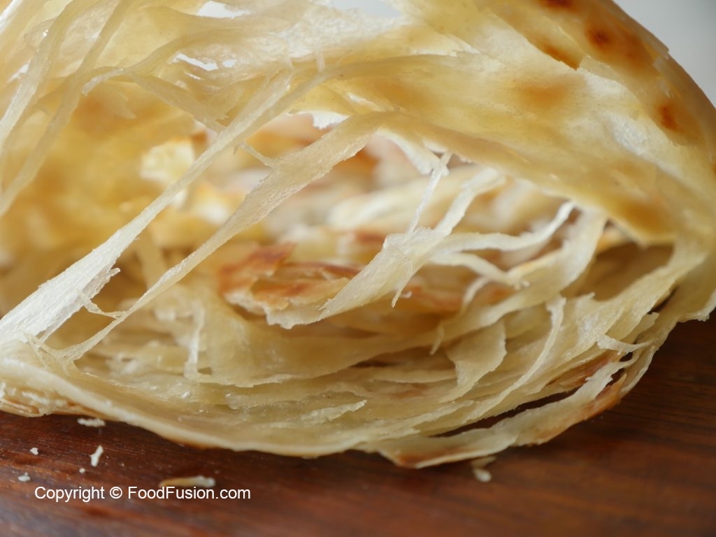 Atta chirak dein aur tamam layers ko ek saath ker ka slightly stretch karein phir dough ko roll ker lein.