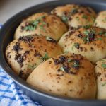 Apply garlic herded butter and bake in preheated oven at 180 C for 20-25 minutes.