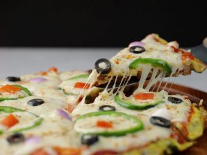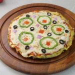 -Pizza sauce dal ker pheela lein,cheddar cheese,mozzarella cheese,shimla mirch,tamatar,pyaz aur black olives dal dein.