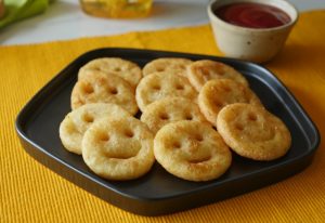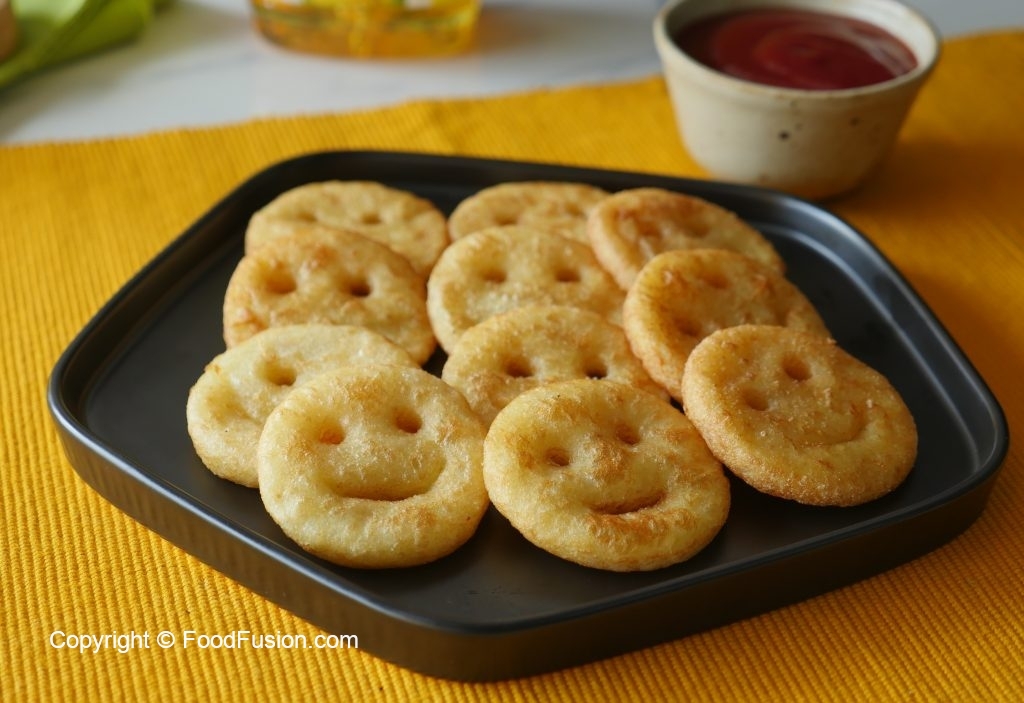 Karhai mein corn oil dal ker garam karein aur potato smileys ko darmiyani ancch per golden brown hunay tak fry ker lein.