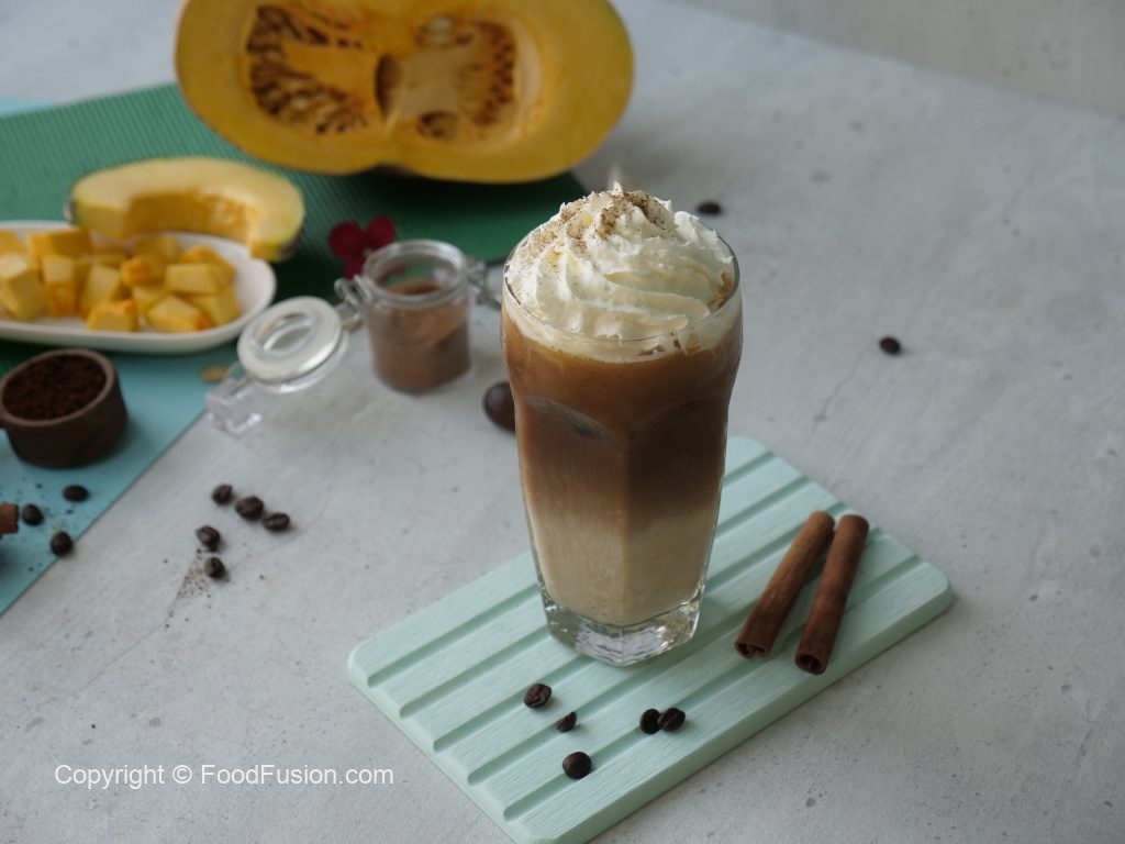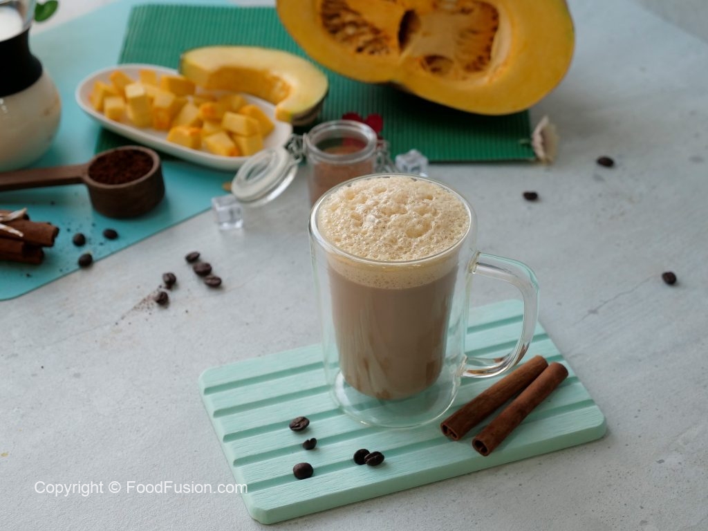 Restaurant quality Pumpkin Spice Latte recipe served hot & cold. #HappyCookingToYou #FoodFusion #PakolaFullCreamMilk