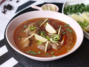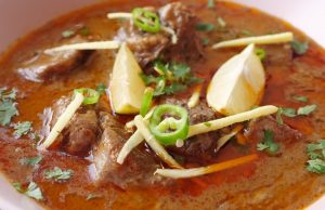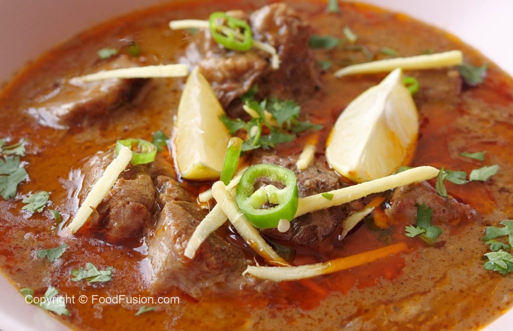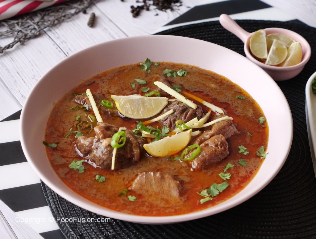 Serving dish mein nihari,chilli oil (tarri),adrak,hari micrhein,hara dhania aur lemon dal ker serve karein!