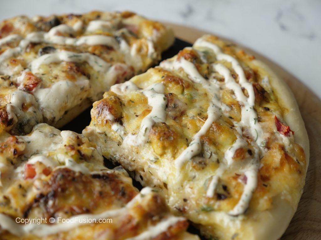 Ranch Pizza recipe with the perfect ranch sauce all homemade with restaurant quality taste. #HappyCookingToYou #FoodFusion #Pizza #Recipe