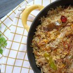 -Green chillies, orange food color, fried onion, lemon slices, fresh coriander, mint leaves dalain, phir kitchen cloth aur lid se cover kar ke dum par 10-12 minutes paka lein.