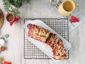 -Cut into slices,drizzle cream cheese icing & serve!
