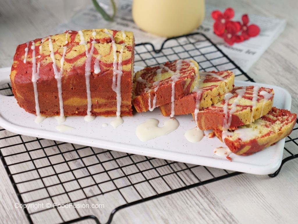 -Dono batter ko loaf pan mein alternatively pipe out kertay jayein aur few times tap karein phir skewer ki madad sa swirls bana lein.