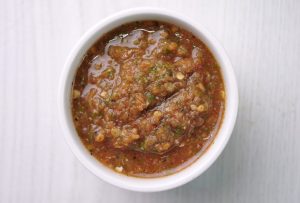 -On a stove,place grill rack & fire roast tomatoes,jalapenos,onion & garlic on direct flame until its charred from all sides.