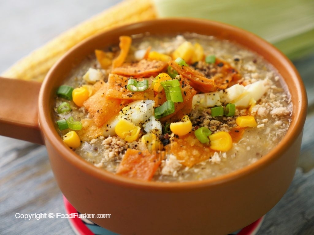 Chicken stock mein shredded chicken,grinded corns,chines salt aur chicken powder dal ker ache tarhan mix karein aur halki ancch per 30 minutes kliya paka lein aur bech bech mein chamcha chalatay rahein.
