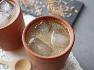 Serving glass mein gurr,sattu,pani,lemon juice aur kala namak dal ker ache tarhan mix ker lein