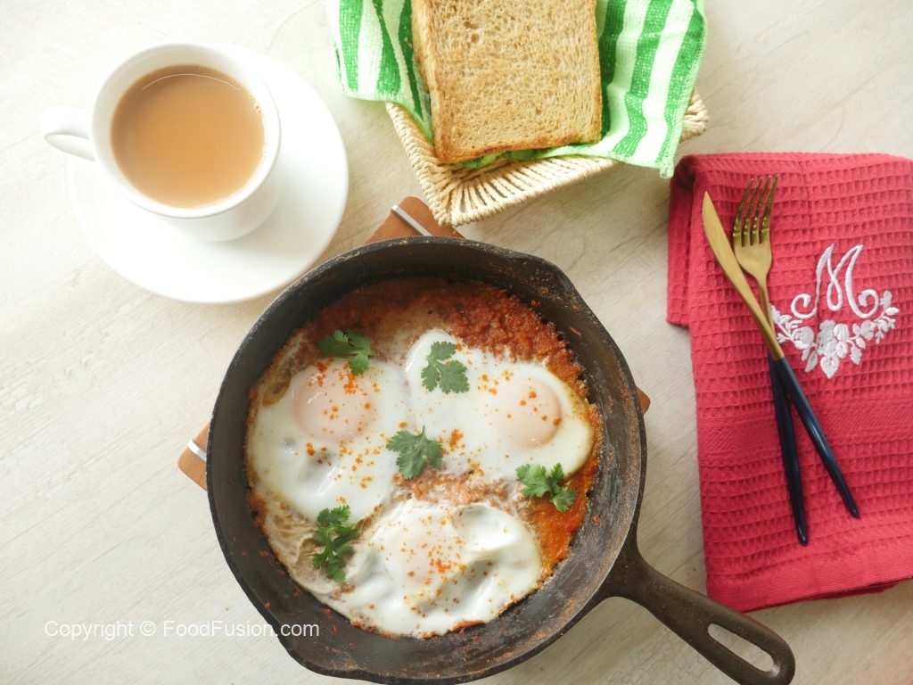 Add eggs one by one,sprinkle red chili powder,cover and cook on low flame for 1-2 minutes.