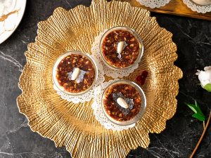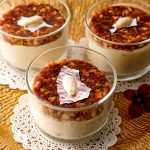 In a serving glass,add prepared sheer khurma then carefully place prepared date mousse disc over it.