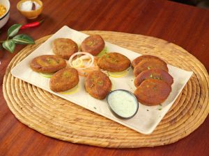 -Take 50g of kabab mixture, shape it like a leaf. (Makes 28-30)