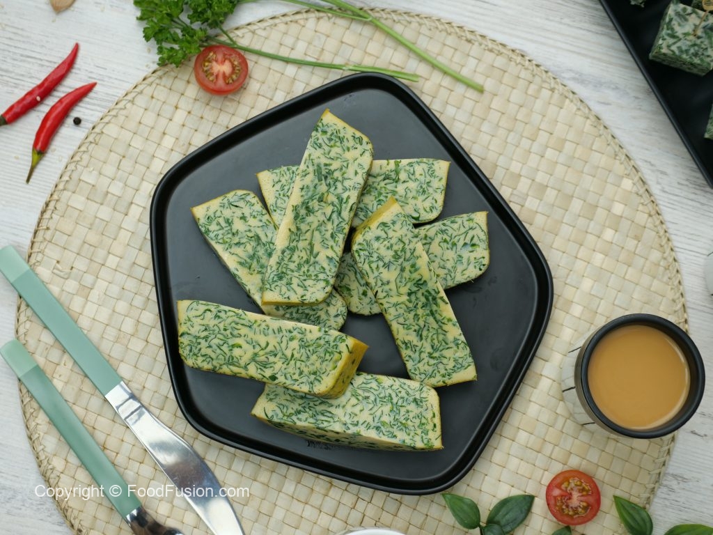 -Slices mein cut ker lei aur tayyar soy dipping sauce ka saath serve karein!