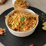 In a bowl,add roasted puffed rice,cucumber,onion,chickpeas,tomato,potato,green chilli,ginger,nimco mix,pickled oil,prepared spice mix,fresh coriander,lemon juice & mix well.