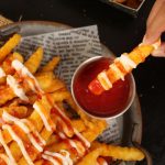 -In a wok,heat cooking oil & fry potato fries on medium low flame for 5 minutes then takeout & let it rest for 10 minutes,repeat frying process & fry on medium low flame until golden & crispy.