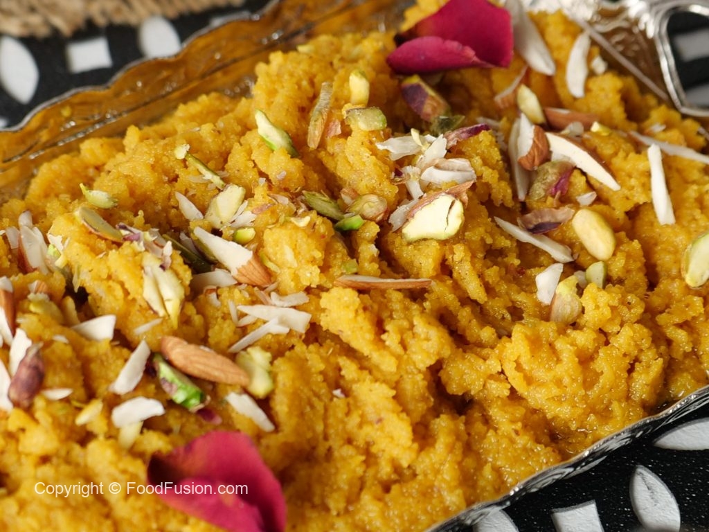 Add semolina,mix well & cook on low flame until its fragrant & changes color (10-12 minutes).