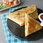 Add vegetable filling and fold tortillas/roti to make a triangle and seal with the help of potato filling (makes 2).
