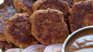 -Greased haathon ki madad sa mixture ki small quantity lein (45-50g) aur halki ancch per dono sides sa golden brown ho Janay tak fry ker lein (makes 30-32).