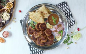 -In a large tray,add beef mince,chickpea flour,ground paste,raw papaya paste,pink salt,red chilli powder, garam masala powder,cardamom powder,mace powder,mix & knead well with the help of hands.